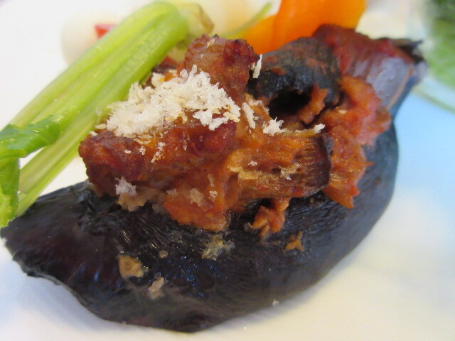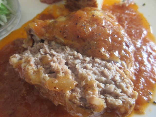 豚肉の下には、ナスとトマトのソースが。