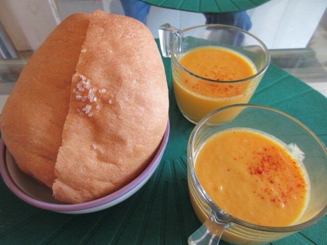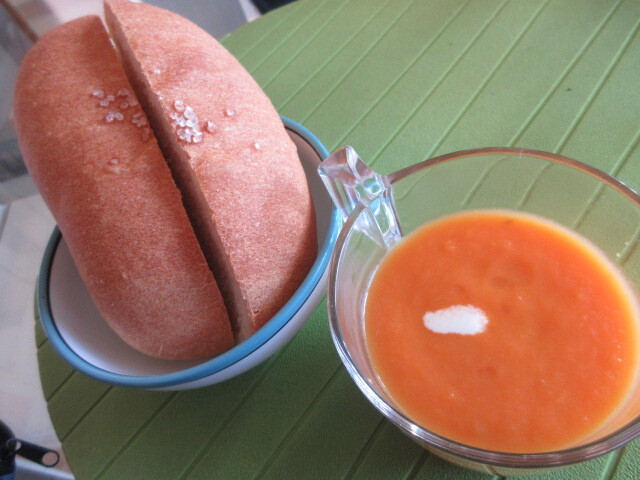 にんじんの冷製ポタージュと自家製塩パン
