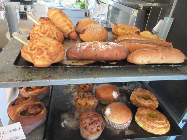 店主さんが朝に焼いたおいしそうなパンが並んでいました。お目当てのパンがある時は、早めに買っておいた方が良いです。後客も入店するなり買っていたし、パンの取り置きの電話もあったので、先に買っておいて良かった。大きな豆豆まめ240円とたっぷりごぼう220円は、豆とごぼうがいっぱいで、どちらもしっかりした食感でおいしかったですよ。