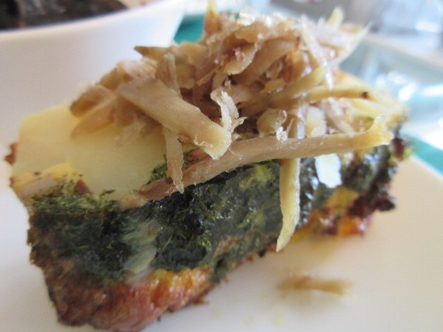 岩出山のケール、ハム、さつまいもが層になっています。