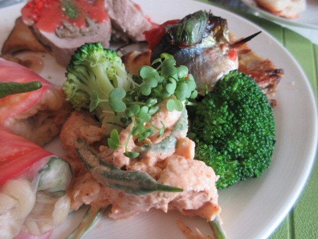 マカロニサラダの生春巻きと新鮮野菜のサラダ。