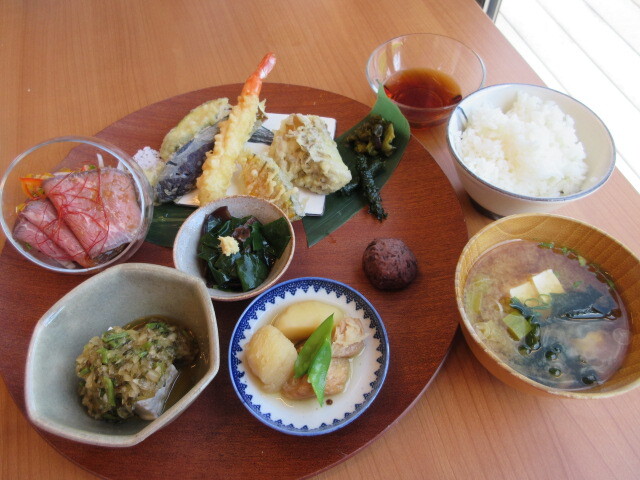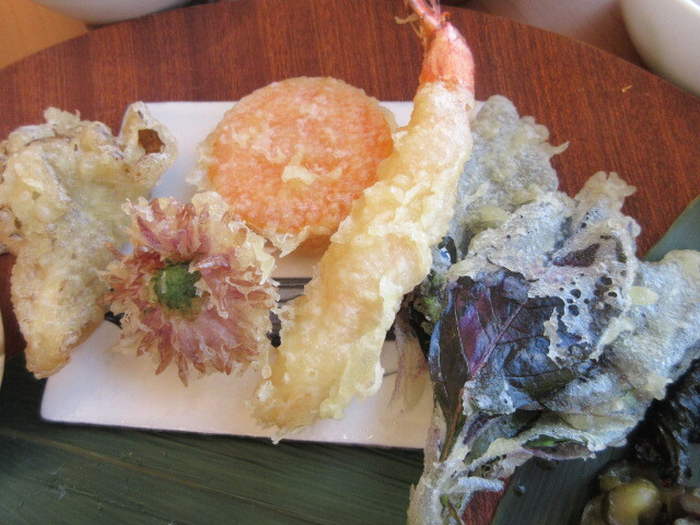 なないろプレートの天ぷら。もってのほか(菊の花)が美しい