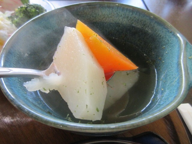 かぶ、にんじんなどの根菜が入ったあっさり味のスープ