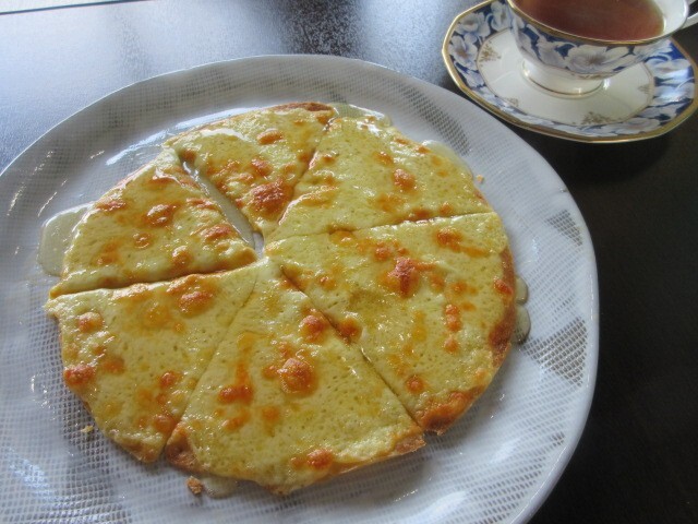 ハニーチーズピザ(うす生地)800円。以前から食べたかったんですよ。チーズの塩気と、はちみつの甘さのコラボが絶妙で、ランチに付くコーヒーや、フレーバーティにもぴったりでした。