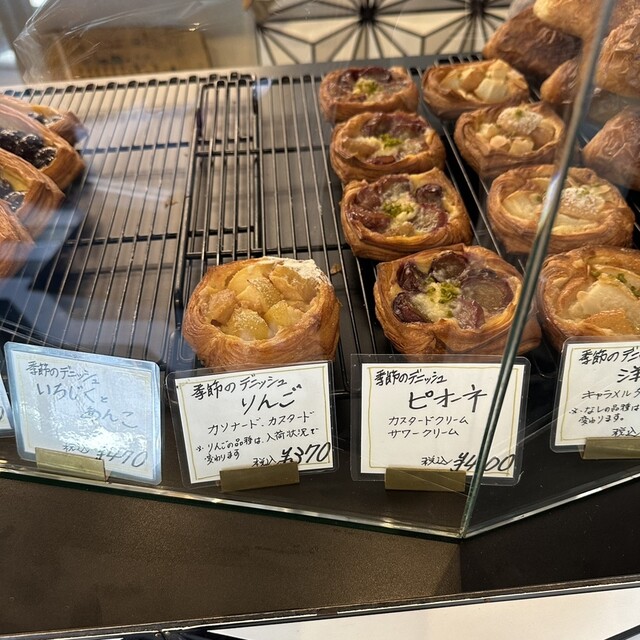 季節のデニッシュのピオーネと洋梨も気になったけど、今日はオザマンド栗とカシス、エスカルゴのカフェ・マロンにしました〜