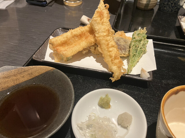 注文したのは、前回と同じく…天ぷら、蕎麦のセットです。他に、玉子焼き、日本酒、ビールなどいろいろ注文しましたが、美味しくて写真撮影を失念しました…笑