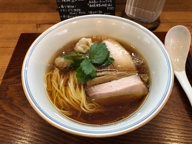 地鶏をベースに豚などが合わされた旨味たっぷりのスープに、鶏油のコクも加わわり、醤油の主張が強いながらも、上品に仕上がっています。