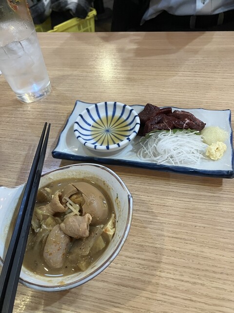 マグロx2 煮込みx2 鯨刺し(真っ黒)、