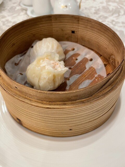 メインの一つ、大海老とガーリックの黄金揚げは、衣のサクサク感とガーリックの香りがしっかり立った王宮らしい味。