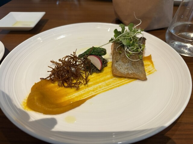 魚料理のスズキのソテー 南瓜のソースは、