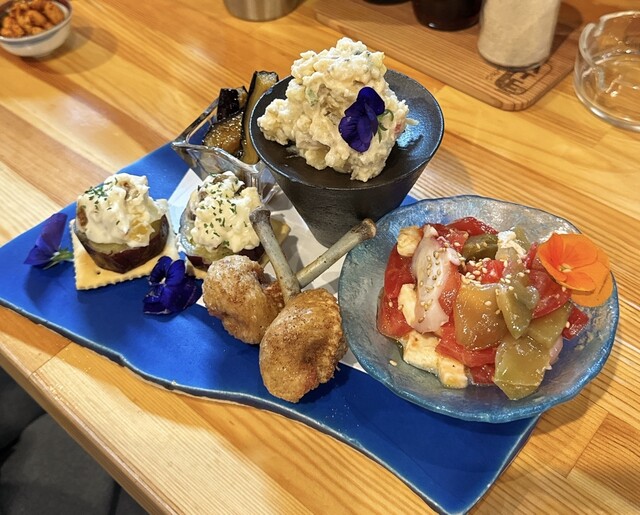 食べだしたら止まらなくなる麻辣ナッツからスタートし おばんざいの盛り合わせ