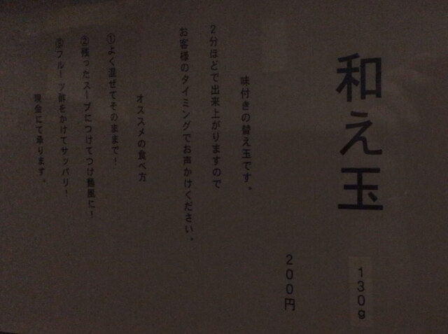 その勢いで「和え玉」200円現金購入。