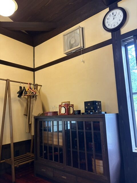 塩尻インターチェンジから車で約50kmの距離にある当店。駐車場あり。当店は、木曽の食材を分断に使用した郷土料理の名店。完全予約制の1日1組限定。この贅沢がまた堪らない。周囲は自然抱かれた長閑な里山。しかし、当店の外観は、その中にあって、一際高級感あふれる日本家屋。まるで御殿のよう。門をくぐると、ご主人が玄関先まで出て来て迎えてくれた。靴を脱ぎ、ご主人の案内で奥の部屋のカウンター席へ。お部屋の立派な梁に目を奪われる。お願いしておいたのは、ランチの約8000円(子どもが一緒だったので概算)のおまかせコース。事前に電話で、5000円から10000円くらいの間で予算を伝えると、その金額に合わせてコースを設えてくれる。内容は、