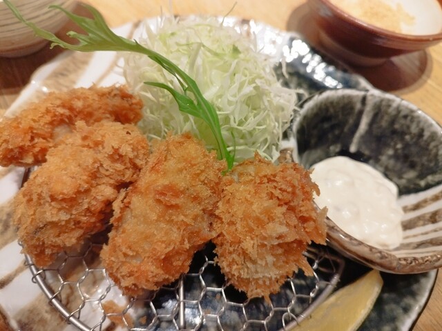 牡蠣フライ4個。ここの牡蠣フライとタルタル、とっても好き!毎年この季節になるとカキフライを求めて来店し、勝手にカキフライ定食をアレンジして注文しちゃいます笑