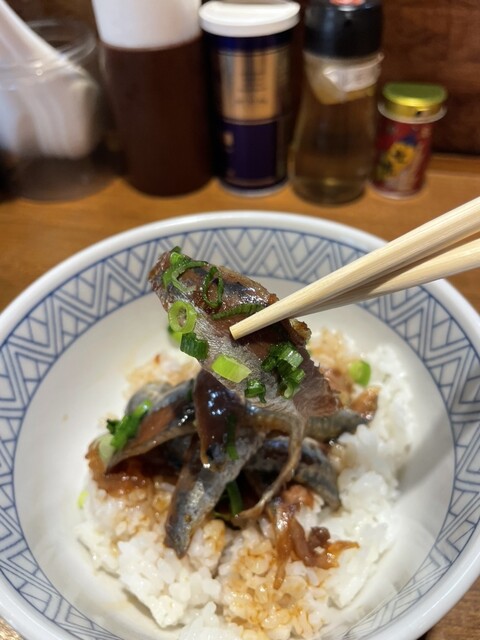 限定メニューやら季節柄冷やしとかありましたがいつもの定番のイワシ丼と煮干しそば