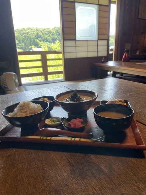 店から見える景色は田植えが終わったばかりの田んぼが見えタイムスリップしたかのような景色。