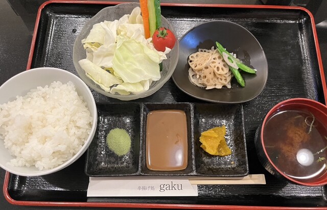 最初に提供されたお盆の生野菜には少し面食らいますが、揚げ物の合間に食べるとさっぱりします。