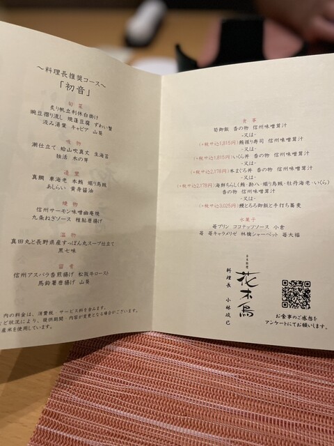 急遽行くことになりお料理は当日選択。料理長推奨料理葵