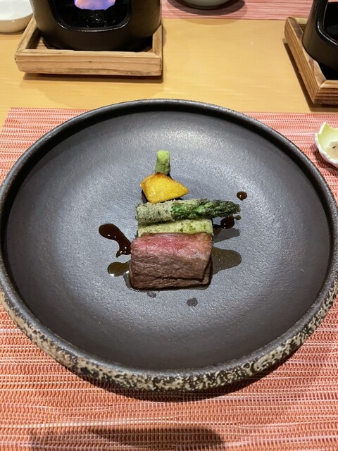食材が良いのはさることながら、ダシの味が際立って美味しい。お刺身も新鮮で良いものを使ってある。だから美味しいのは当たり前だがそれを際立たせる黄身醤油や、肉料理のお供に乗せてあったアスパラガス。どれも端役なのに、手をかけてあった。
