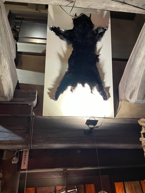 今話題のジビエ、熊肉とかもあったけれど、流石にそれは…熊ごと来たのか、剥がされたクマの毛皮は母屋に展示されていた。
