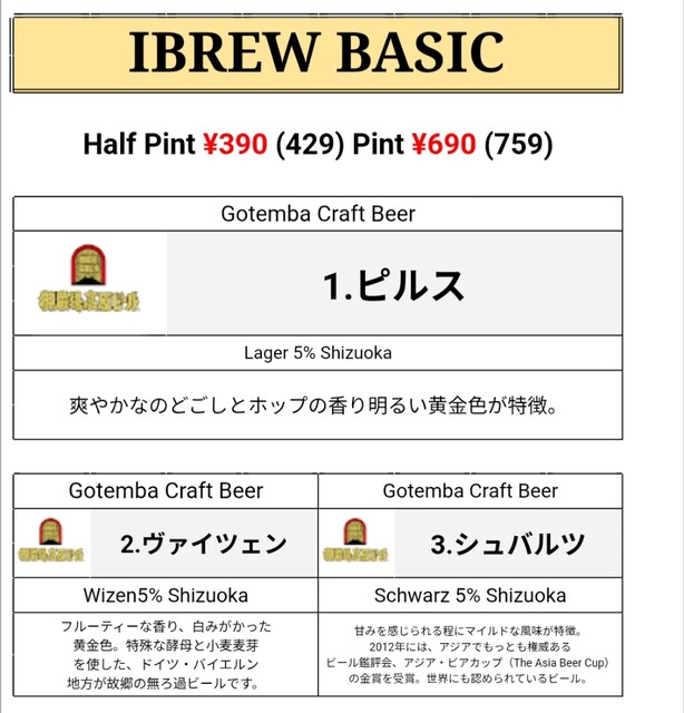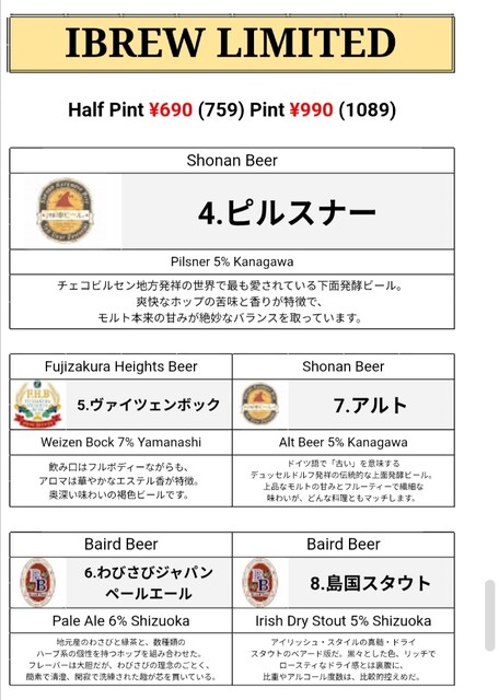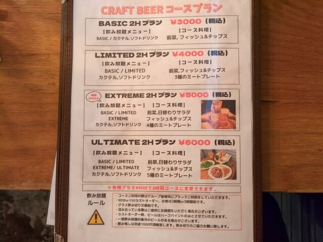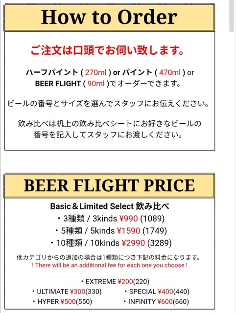 ビールの種類は豊富で、飲み放題でもグラスの大きさが選べます。注文は口頭のみ、会計は現金のみの仕様です。