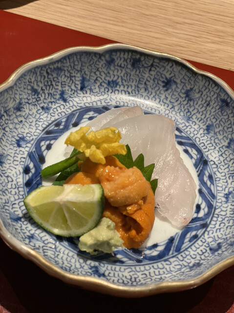 お任せコースで続々と運ばれてくる料理、盛り付けに感動していました。