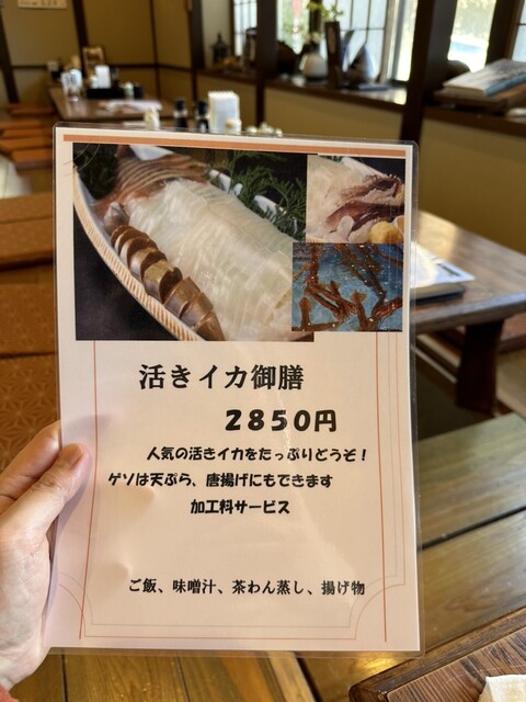 活イカ御膳(2850円)これもコスパ!イカが大きい、肝もたっぷり(肝醤油にします)