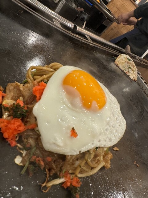 今回はめんたいもんじゃに、バター、しそ、納豆、海苔をトッピングしたオリジナルもんじゃを頂きました!