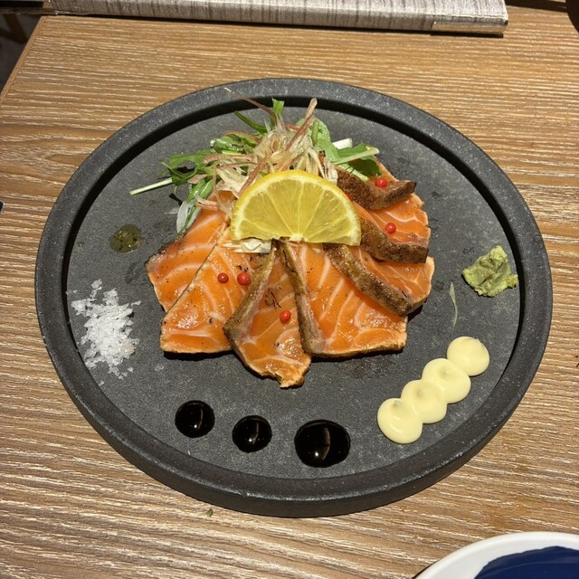 カツオの藁焼きが有名ですが、サーモンの藁焼きにしました。