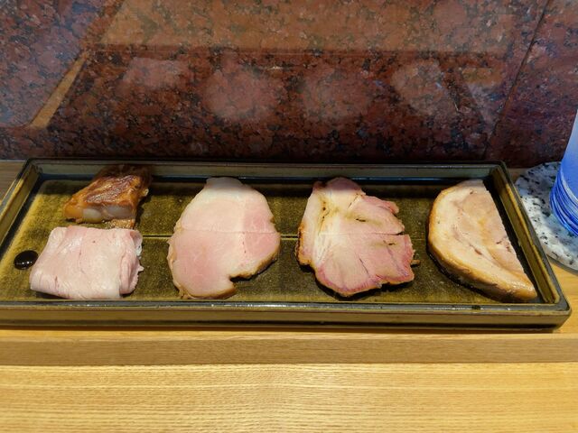 チャーシューの乗ったトレーを置くときも、