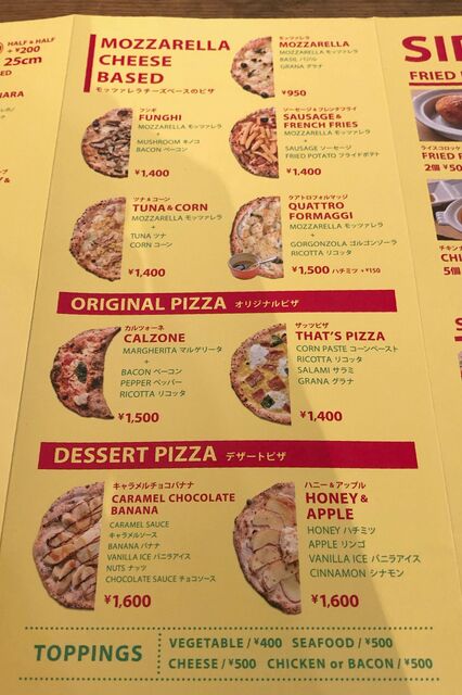 この日は東大阪市の河内永和駅近くのホテルに宿泊です。近鉄線沿いのアーケード街で夕食場所を探しますが、早い時間で常連さんらしき方が2~3人居るのが見えると入りづらい・・布施駅まで歩いて駅周辺を散策していると、何やらちょっとポップで入りやすそうなお店を発見、「That's PIZZA」、ビザのお店のようで願ったりです。入ってみることにしました。