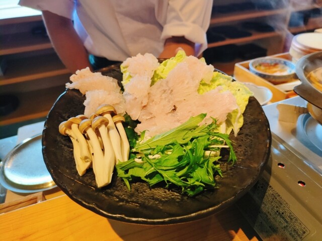熱の入れ方を変えて味わせてくれる鱧鍋!