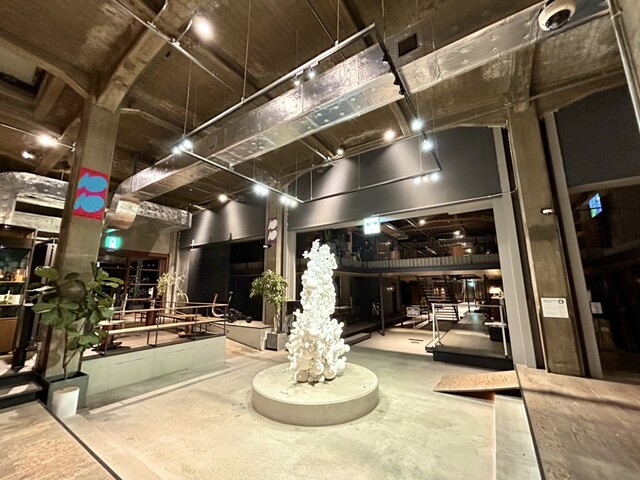 ホテルとの境界には名和晃平くんのオブジェが鎮座