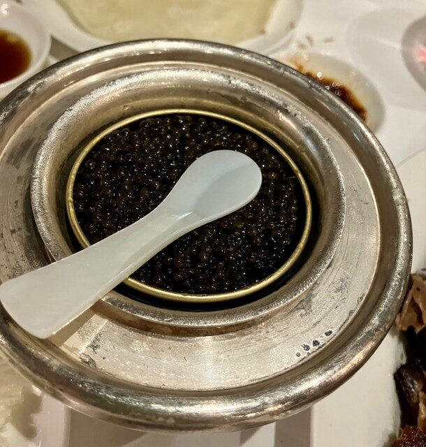 アラカルトで名物のクリスピーアロマダックは香ばしくジューシーでとても美味しかったですが、2名では少しボリュームが多めで、他の飲茶をもっと味わえなかったのが少し心残りです。キャビアを付けましたが、アロマダックと合わせると味が消えてしまうので単品で食した方が美味しかったです。