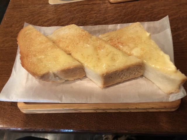 しばらくして到着です、いつもながら美味しいトーストの片方にはバター、もう片方はケチャップとマスタードが塗ってあり、中は玉子とハムと胡瓜がサンドしてあります。味、ボリューム申し分ないです。