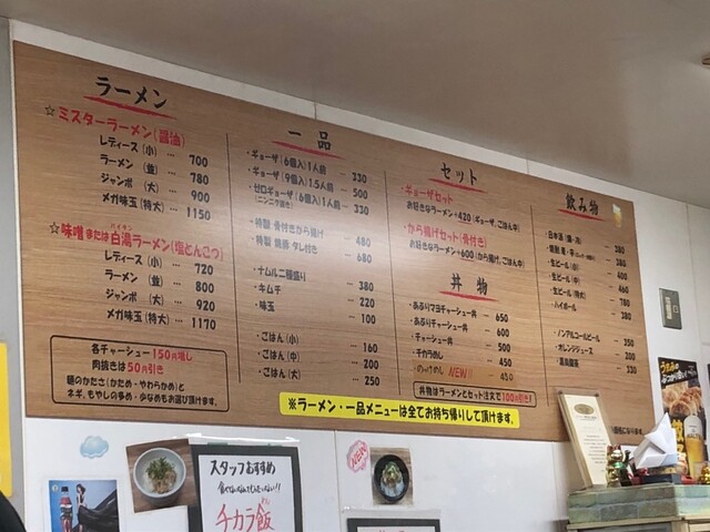 ミスターラーメン並(チャーシューマシマシ、ネギもやし多め)