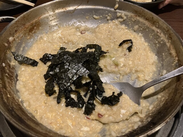 オススメは〆の雑炊です。残った鍋スープを一旦返して調理してもらいます。元のスープに味噌も足してるのかな、卵でとじてすごく美味い!1人前を2人で分けても十分なボリュームですね。