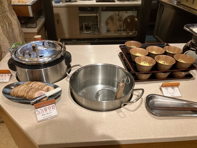 麺類だけでも、ラーメン、蕎麦、パスタ、焼きそばがあって、さらに小籠包や肉まん、カレーライスも用意されてる。そんなに一度に食べられないのが悩みどころ。
