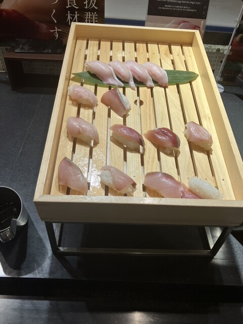 海鮮コーナーにはマグロの中トロ、鯛、ブリ、ハマチ、エビなどの寿司と刺身。醤油バーから、濃口や薄口など自分に合ったお好みの醤油を選べます。自分がセレクトした湯浅醤油は上品な香りでした。