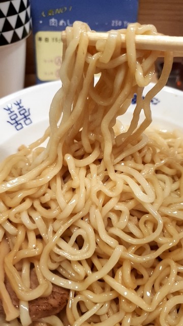 正直、感動しました。煮干しの旨味がたっぷりでかつ、魚介の出汁も強め。そこにツルツルの中太麺がうまく絡み合っています。やはり、自分はこってりの方が好きですね。