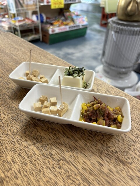 冷蔵庫やレンジ前にはセルフで温めて食べる揚げ物や(1個単位から可能)やオリジナルな家庭料理など色々なアテが揃っていて目でも楽しく美味しい