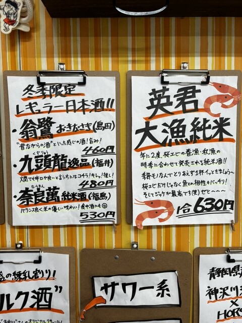 店内飲食は事前予約すれば札掛けメニューをオーダー出来ます。
