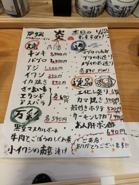 炉端 炎 横浜店に伺いました。店内は活気があり、炉端焼きならではの臨場感を楽しめる雰囲気で、スタッフの対応も明るく心地よかったです。