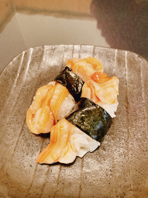 サービスの一貫はホタテの紐にタレがかかっていて、それも美味しい♡
