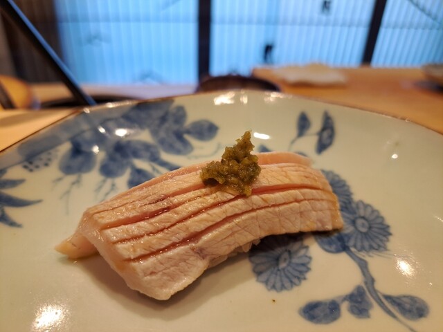 めちゃくちゃ良い白子。極めが細やかで握りの体温で溶けそう