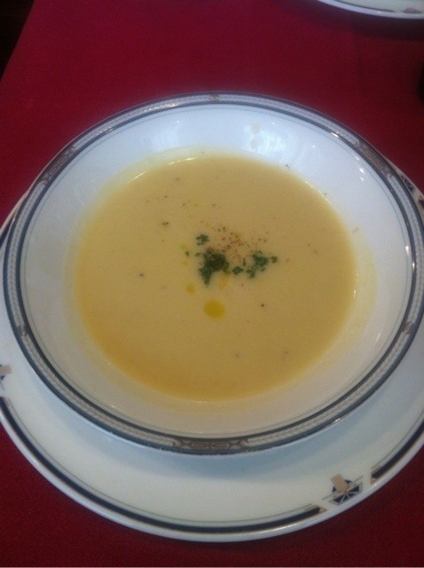 ポテトベースのポタージュ。コンソメスープの味がほのかにする優しいお味。