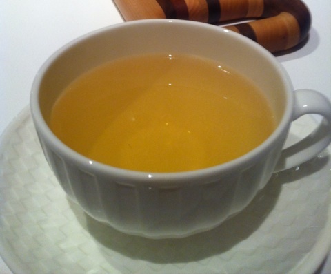 ・蒸し上げたあんこうの肝春菊とフグ葱温かいバーニャカウダソース