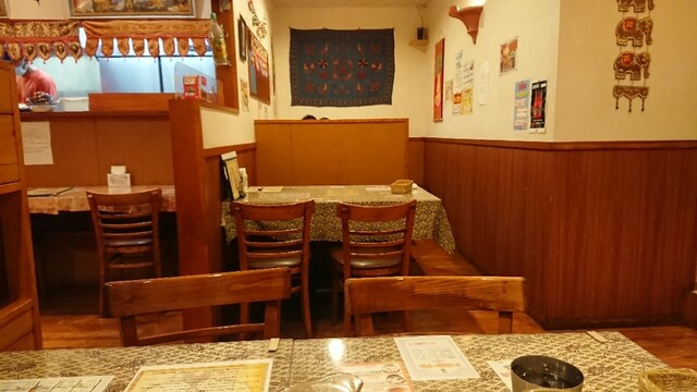 18時前。店内どこでもどうぞ、とのことなのでテーブル席へ。ここは店名や店の掲示物を見てもわかるとおり松戸のタアバンと同じである。
