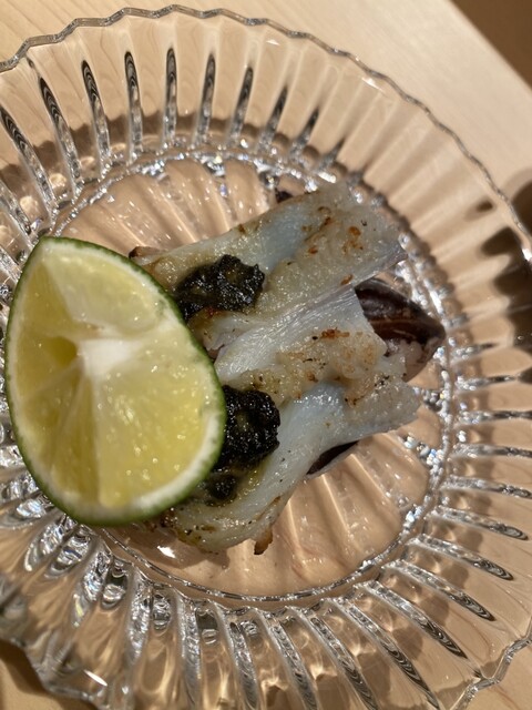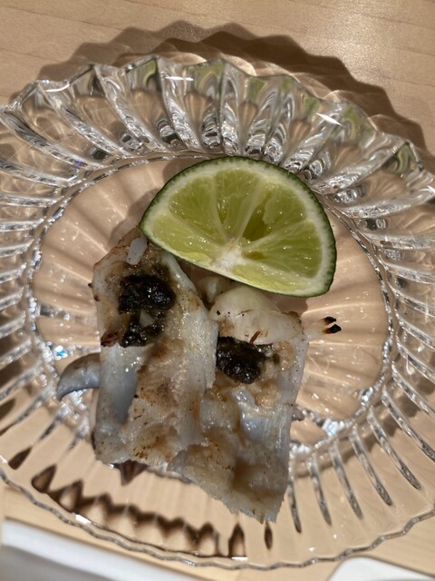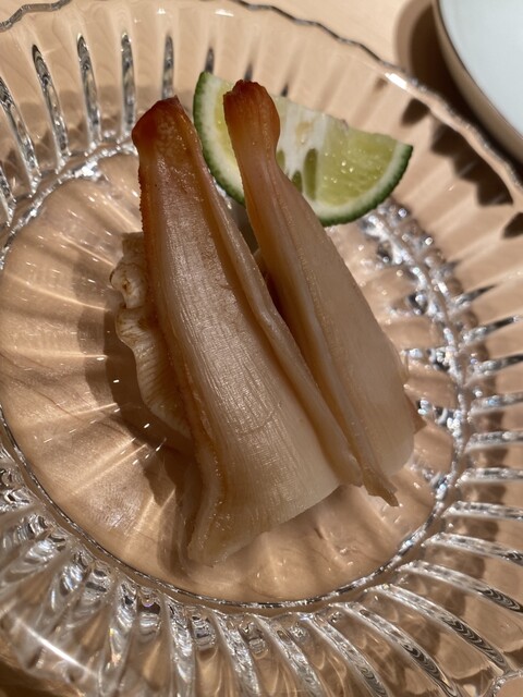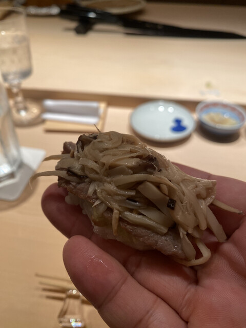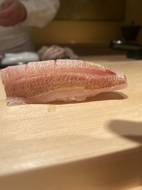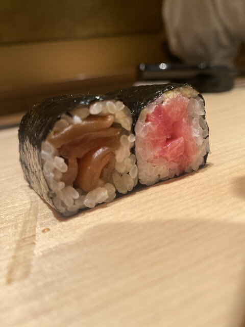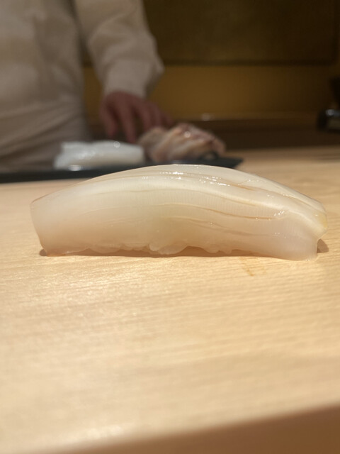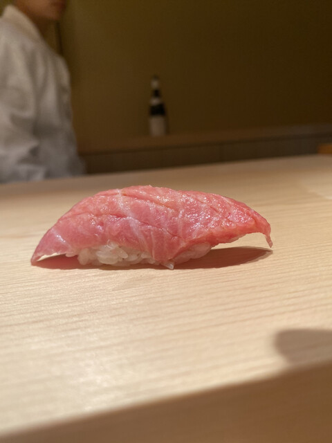 この日の大トロは、銀座にあった頃の「あら輝」さんを思い出さすような、ライオン香がそこはかと薫る素晴らしいマグロに、しっかりとした酸とミネラルを効かした粒揃いしたシャリを、最小の手数(返し)で見事に仕上げておられました。