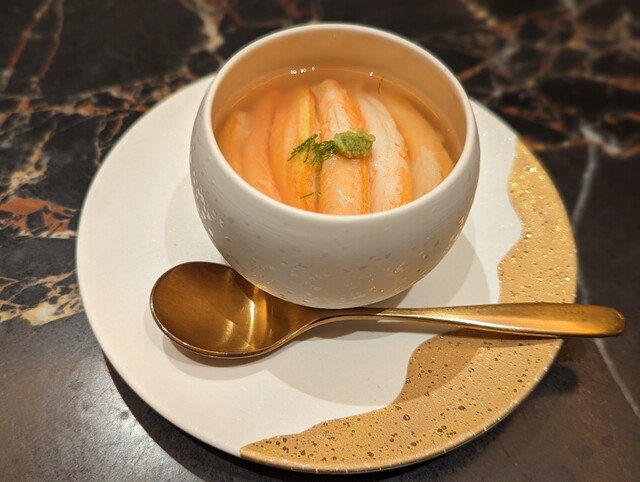 下のバターナッツソースの甘みと上の唐墨の塩分が堪らん!と言うか私は唐墨が好き。